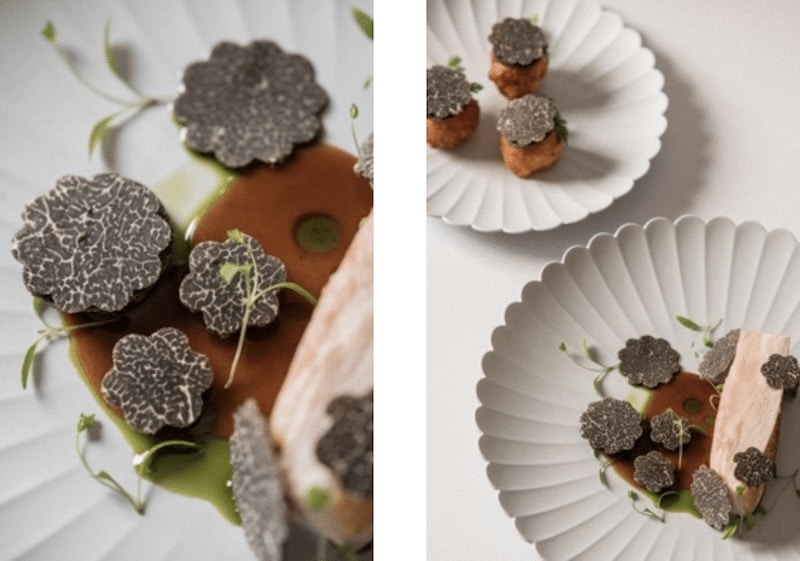 Rémi Chambard, chef du restaurant gastronomique Le Corot, aux Etangs de Corot à Ville-d’Avray (92) troque son menu « dégustation » pour un menu « Tout Truffe » le temps de la saison, imaginé comme un voyage culinaire à travers l’Île-de-France, où la truffe dialogue avec des produits de saison soigneusement sélectionnés : Champignons, chou de Pontoise, agastache pour Ville-d’Avray ; Saint-Jacques, persil, sauce au vin « Les Terrasses » pour Suresnes ; Barbue, poireau, beurre fumé pour Bouafle ; Volaille « La Gâtinaise », topinambour, sauce Albufera pour Milly-la-Forêt ; Brillat-Savarin, pain grillépour Favières et Chocolat, fève de cacao, crème glacée vanillée pour Choisy-le-Roy