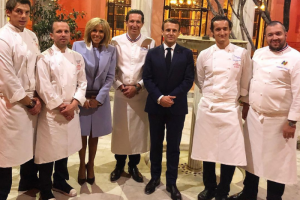 Parce que le chef de l’Etat et son épouse apprécient particulièrement la cuisine de Christophe Baquié, le chef 3 étoiles s’est vu confier le menu …