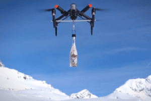 Le rosé d’hiver, Grain de Glace 2018, cartonne sur les pistes. Cette année, entre deux descentes, le rosé livré par drone est la grande animation …