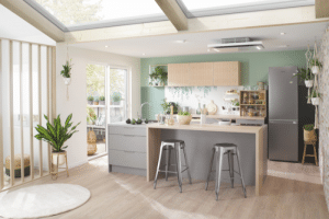 Cuisinella complète son offre avec (Re)Source silex, une cuisine zéro déchet, plus pratique, avec potager intégré, façade recyclée, légumier ouvert, billot avec bac à compost… …