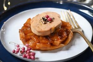 Servi avec des toasts briochés, ce foie gras se savoure avec une réduction de Gewurztraminer et des poires rôties. C’est une magnifique entrée de fête.