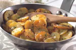 Précuites à l’eau, ces petites pommes de terre primeurs sont ensuite sautées à la graisse de canard et parsemées de thym citron. C’est un délicieux ...