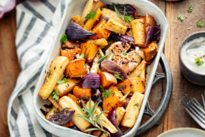 Ces légumes rôtis, parfumés au miel et aux herbes se savourent avec une sauce tahin relevée de citron vert. C’est une gourmandise d’accompagnement pour une ...