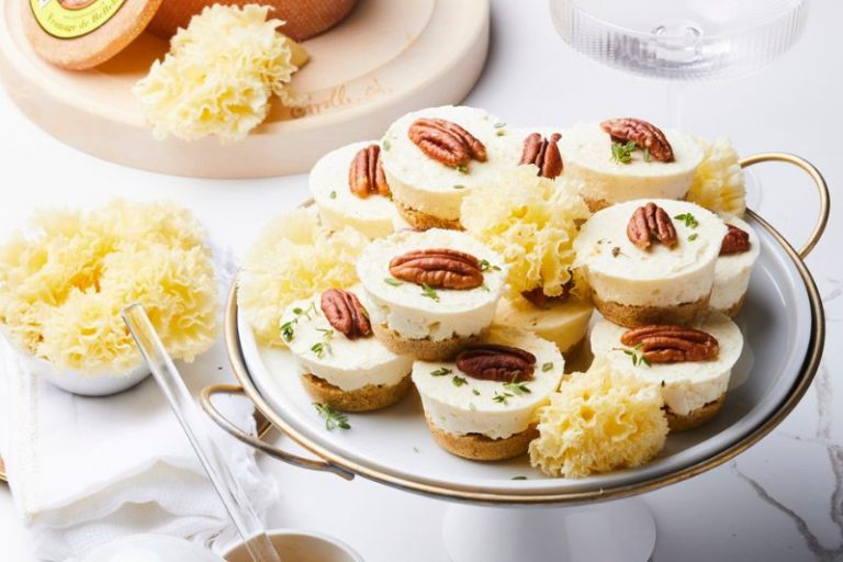 Ces mini-cheesecakes salés aux noix de pécan et à la Tête de Moine sont des petites bouchées apéritives dont ne fait qu’une bouchée.