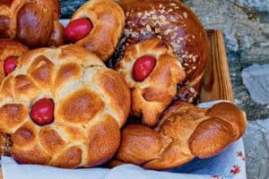 Selon la tradition pascale, en Crète, on savoure des brioches de Pâques tressées à la main et ornées d’un œuf rouge, symbole de renaissance et ...