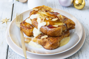Avec des bananes caramélisées au sucre de coco, ce pain perdu banoffee se déguste aussi bien au brunch qu’au moment du goûter.