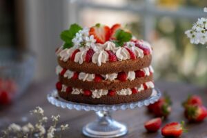 Moelleux comme un petit coussin de plumes, ce fraisier aérien se prépare avec une génoise et une crème au bon goût de purée d’amande complète.
