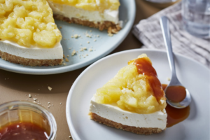 Sans cuisson, frais et pas trop sucré, ce cheesecake aux pommes et caramel au beurre salé est un dessert gourmand, facile à réaliser.