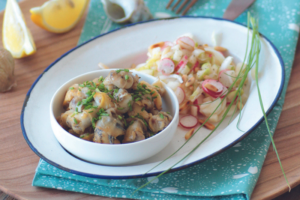 Accompagnés d’une salade de radis, d’endives et de pomme verte, ces bulots à l’aigre doux sont une manière originale de savourer les petits gastéropodes marins.