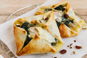 Savourez un joli mélange de caractère et de douceur avec ces feuilletés épinards et Pont l’Evêque AOP, préparés avec des noisettes concassées et des raisins ...