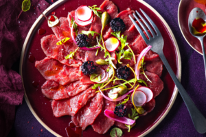 Savoureuse et facile, cette recette de carpaccio de boeuf aux mûres fraîches s’accompagnent d’un condiment aux mûres et de pickles d’oignons rouges. C’est une entrée ...