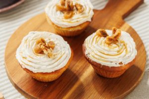 Avec des noix pour le croquant, ces muffins figue miel sont recouvert de crème au fromage frais. C’est délicieux et facile et réaliser.