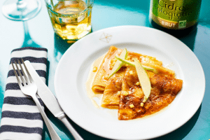 Après sa délicieuse recette de galette, Matthieu Dalmais, chef pâtissier de Boulom, propose des crêpes au cidre et aux pommes, comme des crêpes Suzette. Cet …
