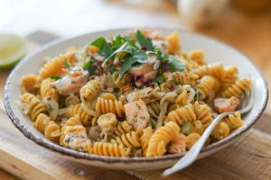 Délicieux mariage terre-mer, ce risotto mêle gambas et chorizo, le tout cuisiné à la sauce tomate au Parmesan. Savourez !