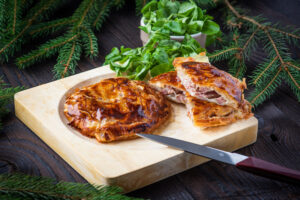 Régalez-vous de ce Pithiviers de saucisse de Morteau cuisiné à la Cancoillotte parfumée au Chardonnay. Ce plat facile se savoure avec une salade de mâche.