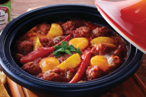 A la manière d’une chatchouka, ce tajine de kefta d’agneau cuit dans une sauce épaisse de tomates et de poivrons aux épices dans laquelle on ...