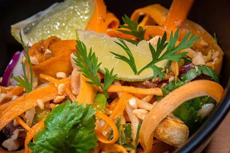 D’une belle légèreté mais très gourmand avec sa sauce au beurre de cacahuète, ce wok de carottes façon pas thaï se prépare sans nouilles de riz.