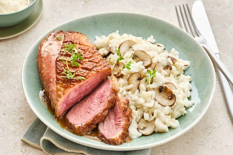 Filets de canard et risotto aux champignons