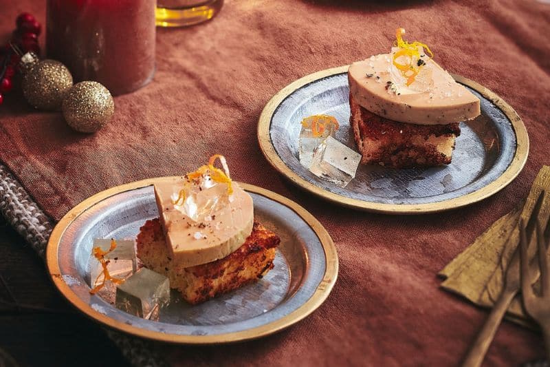 - Déposer une tranche de Foie Gras sur chaque toast. Ajouter quelques cubes de gelée de Muscat par-dessus ou à côté. Disposer quelques zestes d’orange.