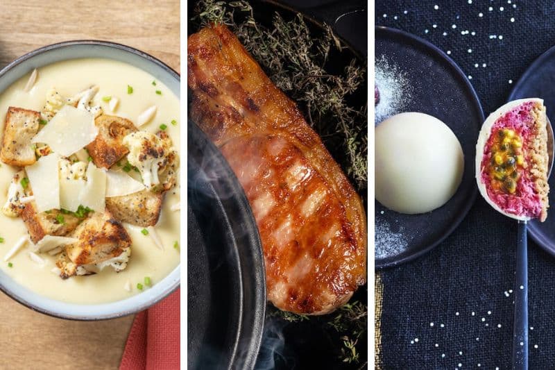 Dessert : Dômes de chocolat blanc à la mousse de framboises, cœur au fruit de la passion