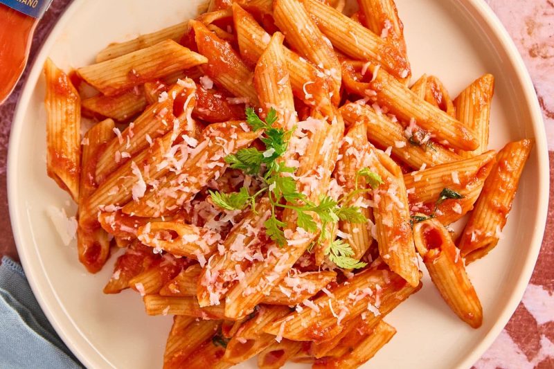 - Pendant que la sauce mijote, faites cuire les penne dans une grande casserole d’eau bouillante salée, selon les instructions du paquet.