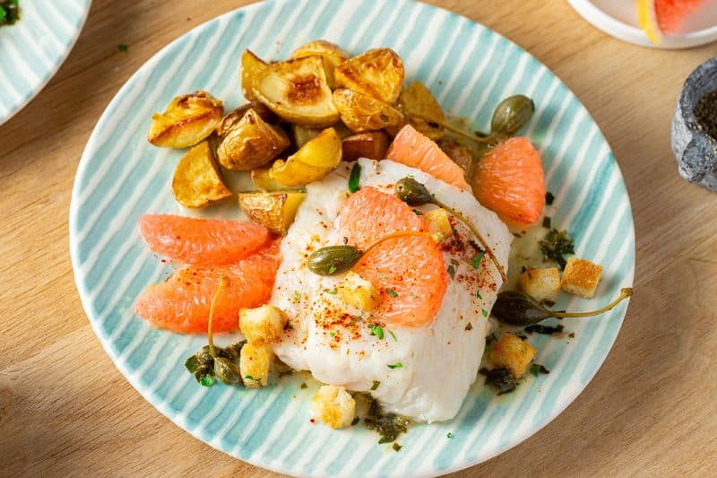 Cabillaud à la grenobloise revisité au pamplemousse rose de Floride