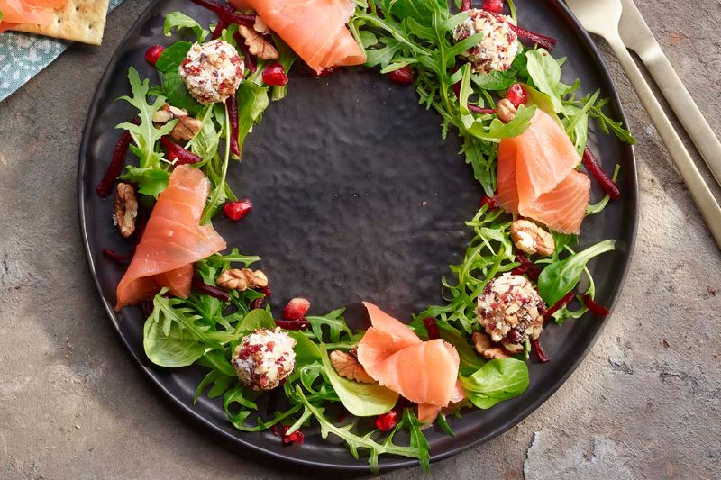 - Ajouter, en alternant, des boules de fromage et des tranches de saumon fumé Mowi Pure coupées en deux.