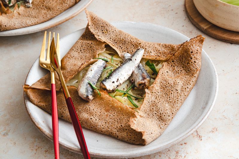 Galette bretonne au confit d’oignon et sardines « Pêche du Jour » Tournesol
