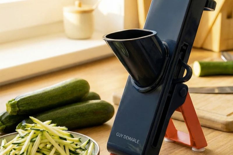 Ce qui fait la différence ici, c’est l’expérience. Là où la mandoline traditionnelle impressionne, la version verticale rassure. Là où elle demande de la technique, elle simplifie. Avec cette approche, Guy Demarle transforme un outil parfois redouté en véritable allié du quotidien.